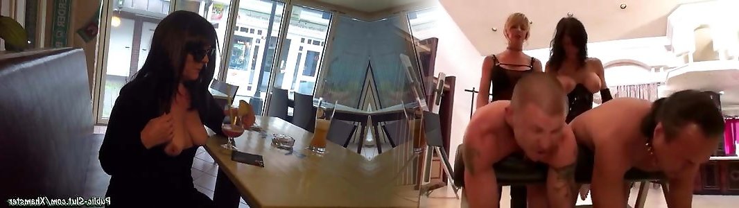 Busty public slut fucked and mouthjizzed in public pub