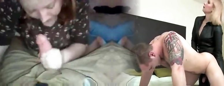 Heeled oral job sub facefucked pouch deep