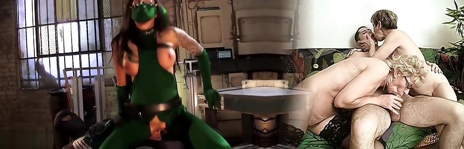 Hot ninja brunette getting shared between a pair of hungry studs