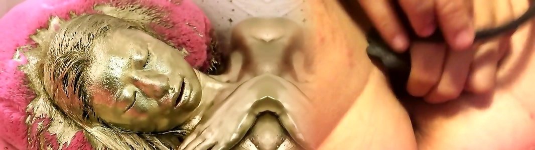 Girl in gold paint screws herself and rails Sybian