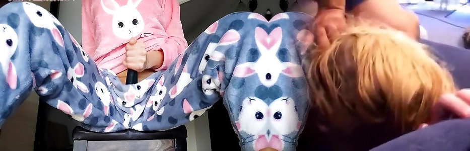 Perv Likes To Rub His Dick Against His Step-siss Pajama Pants & Between Her Round Buns, Till Cumming