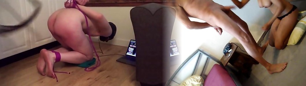 Girl-on-girl Victim In Underwear On Her Knees In Front Of Domina