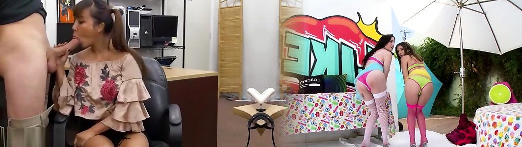 Ginormous caboose chick gets fucked by pawn man in his office