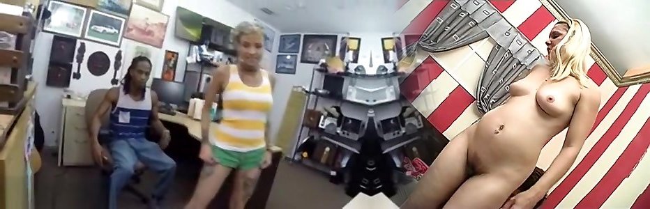 Platinum-blonde stripper gets jammed by black girl big titts boy at the pawnshop