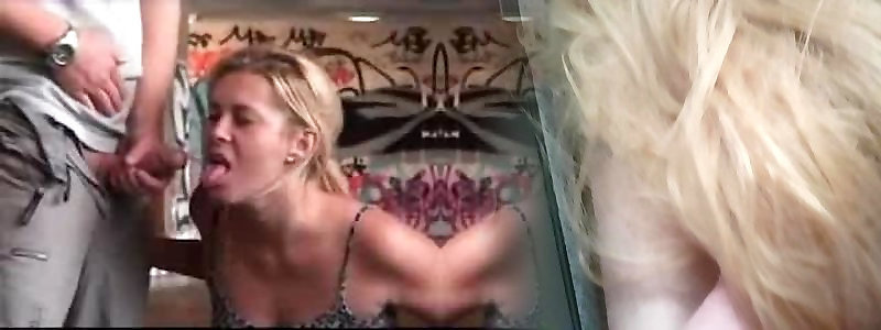 Super-steamy blond plumbed agent in public