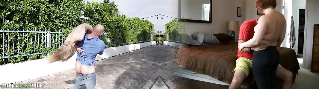 Milf stepmom and Latina teen share big cock and try pile driver pose
