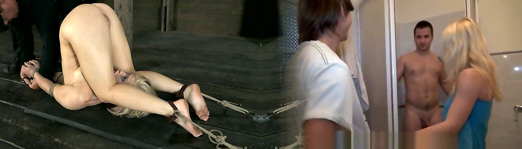 Pallid light-haired is roped up in bizarre position and gets gash plenty of driven