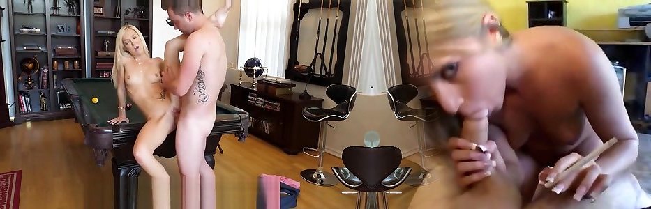 Ginormous Boobie Blond Stuffed Over Pool Table