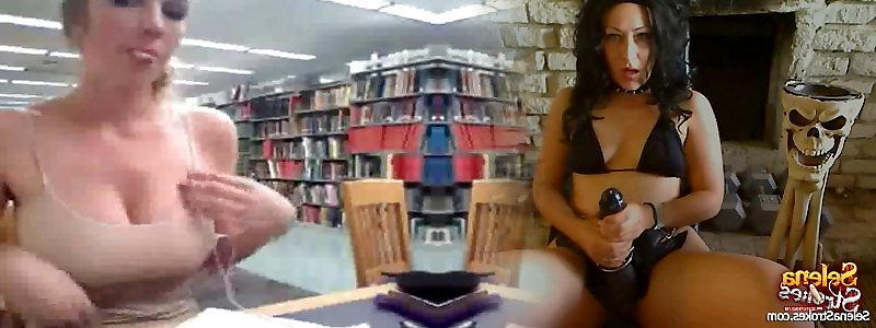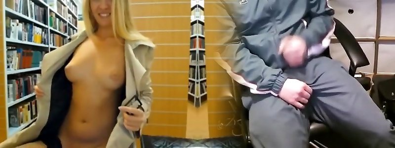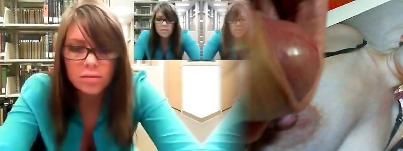 Webcam babe in sweater sundress displays in the library
