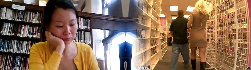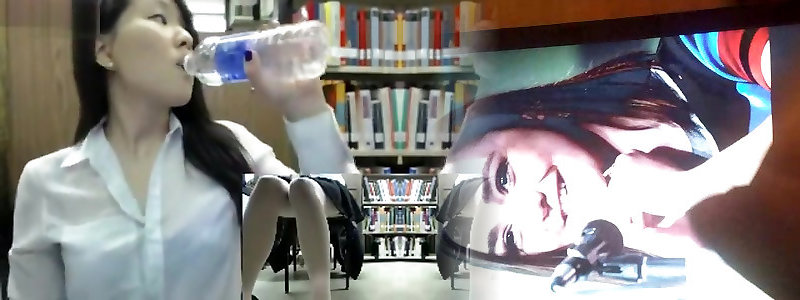 Uber-cute chinese teenager woman teased in the college library