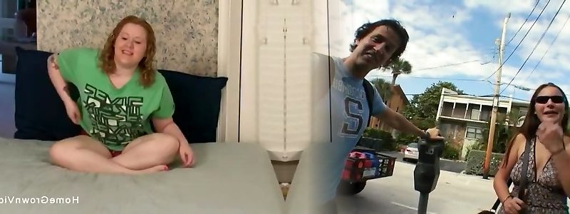 plus-size young red-haired plumper teenage gets raunchy outdoor boned by her thin beau