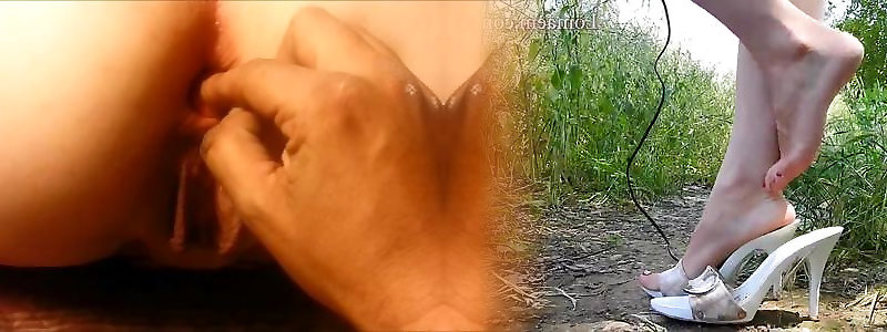 Completely naked woman in the forest - brush in the vagina