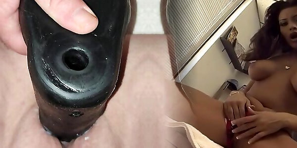 LOOK AT THIS COCK IN MY PUSSY , Rich BBW masturbating alone with his new dildo - Use a rich sex toy while he groans and