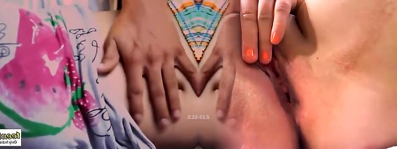 Indian teenie pressing her melons and fingerblasting her honeypot