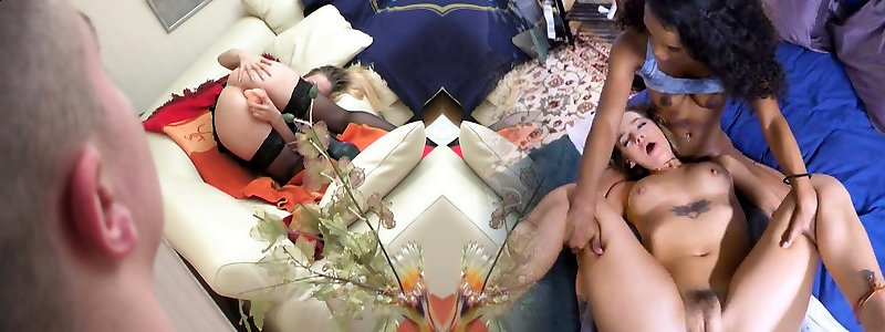 Super-naughty dorm femmes, Zoe Bloom, Rosalyn Sphinx, and Pamela Morrison, are hosting a blowjob competition