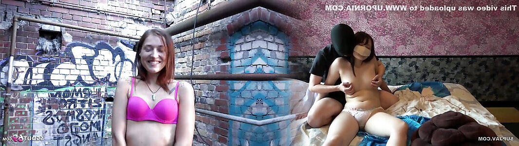 Thin dark-haired tramp with diminutive mounds picked up on the street by a nerd
