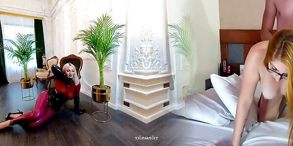 Mind-blowing Milf Crimson Hardcore in flesh cock-squeezing latex trousers