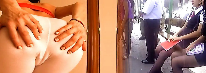 Mini dress and lacy panties dry hump cum through pants