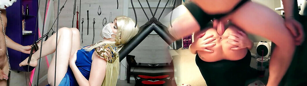 Big-boobed blond victim in bondage throne