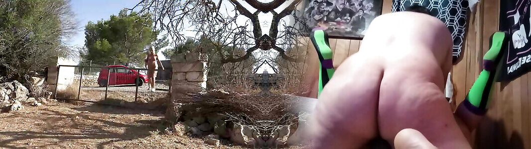 Super busty German chicks sharing a long pecker outdoors