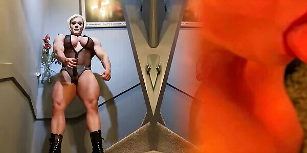 Woman Bodybuilder Takes a bathroom