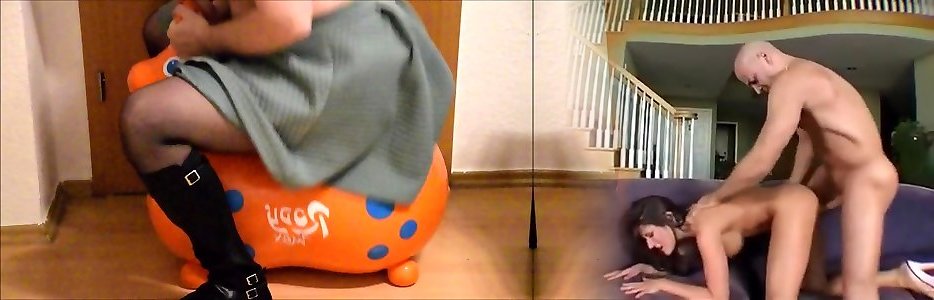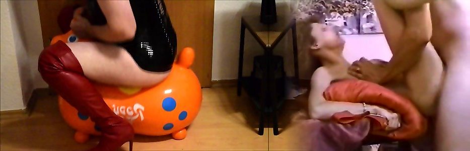 crossdresser riding his inflatable rody