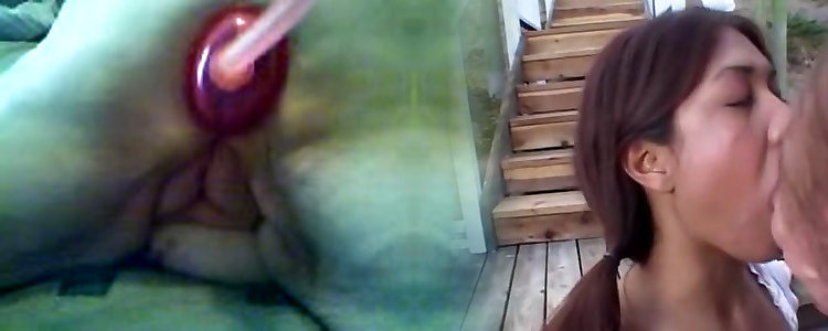 Dirtygardengirl in sexy black stockings pump her anal prolapse & pulling her prolapse out