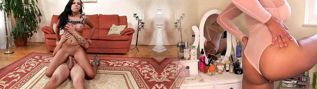 Bitchy sandy-haired with sexy legs and enormous tits gets her crevasses screwed rough by giral friend mum dudes