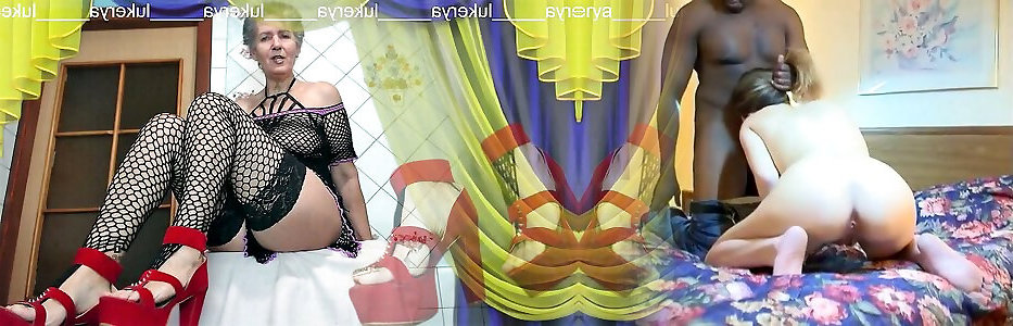 Super Hot housewife Lukerya wears sheer black clothes and red high high-heeled slippers for flirting on camera online.