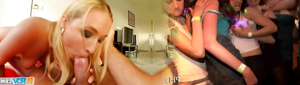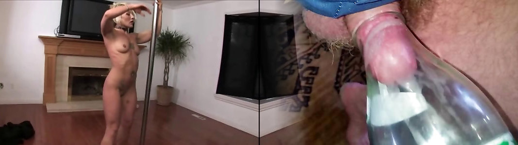 Horny platinum-blonde unclothes and pole dances at a party before Oral