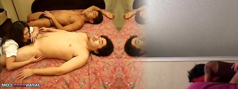 Steamy tear up Japanese lady gagging 2 throbbing pillars and get boinked in threeway