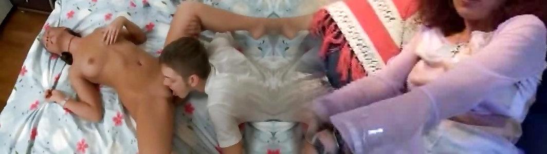Mamasha from Russia sucks stepsons cock and fucks him in cowgirl position