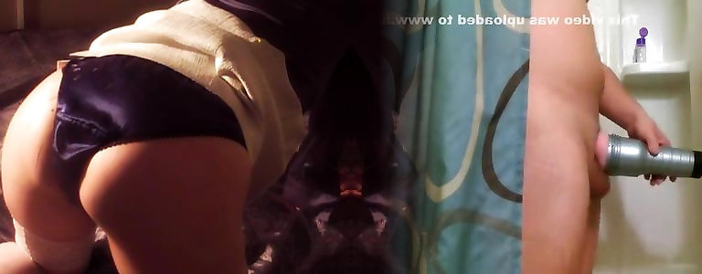 Satin blouse, satin underpants pussy-smothering cum shot on undies