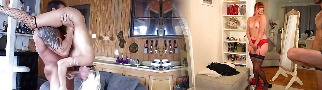 Big ass wife starts sucking her husband&039;s in the kitchen and kisses.