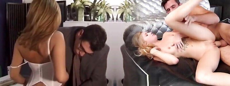 Cfnm honeys tie boss down to give him head
