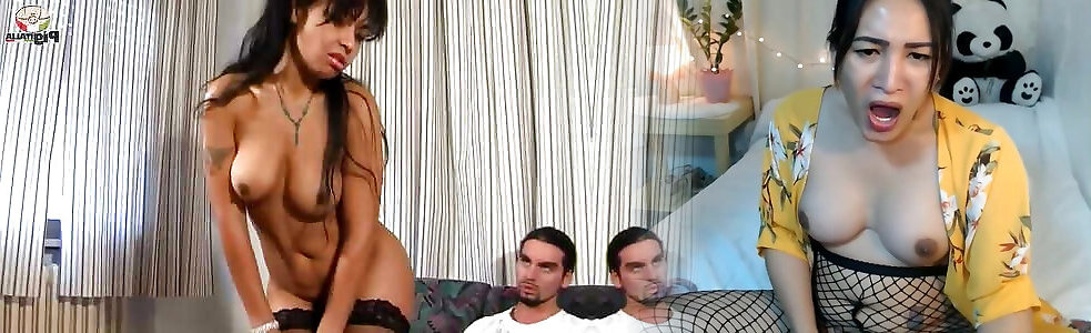 SEXY GIRL GAGS ON TWO MASSIVE COCKS BEFORE A HARD FUCK