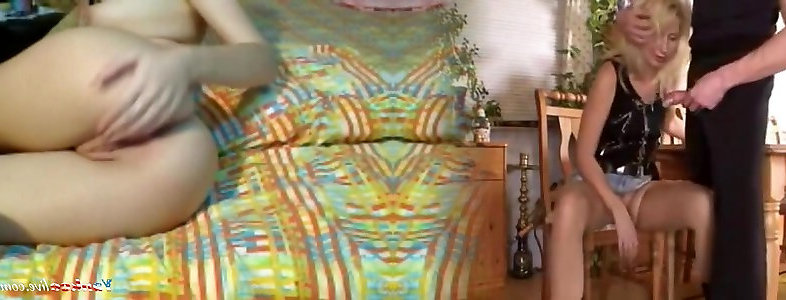 Sloppy light-haired superslut is make to grind hard pink cigar with her sharp tongue