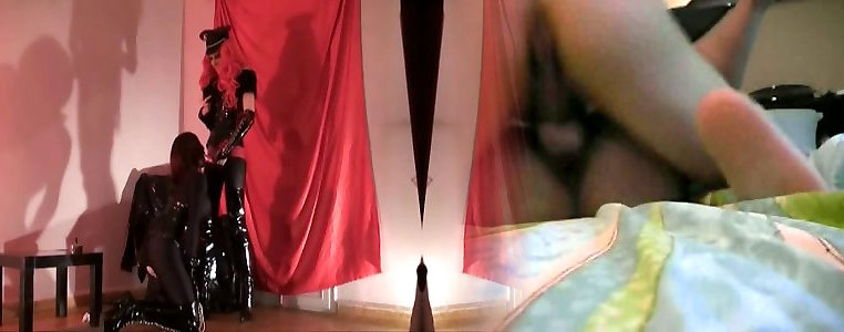 Hot Assets and Brilliant Arsed Crossdresser in Crimson Vinyl Luvs Sausage.