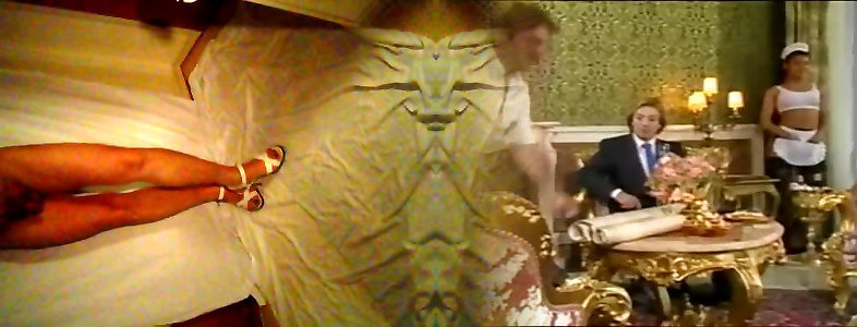 She-creature in bodystocking playing