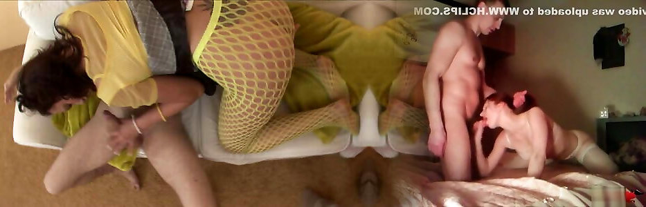 Two Russian cocksluts got a river of man chowder from Three jizz-shotguns