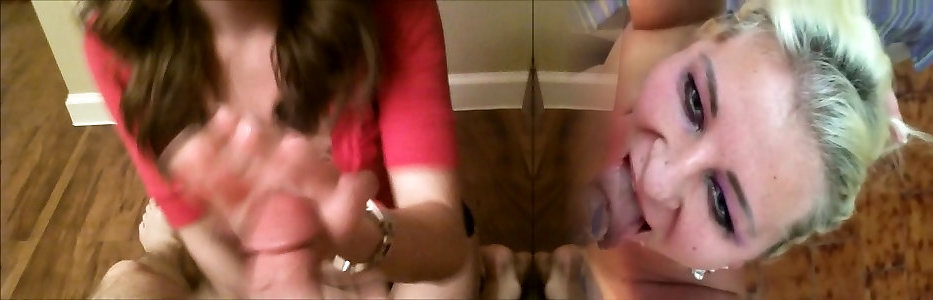 short haired blonde gets jism in throat