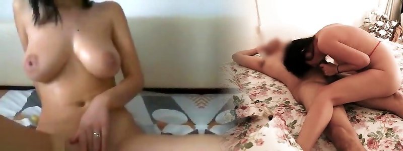 Close up of sexy milf wife rubbing oil into her big natural 32f tits and then rub her wet pussy and show her tight asshole
