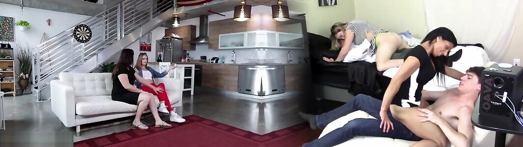 Two gorgeous MILFs love fucking with a horny guy together
