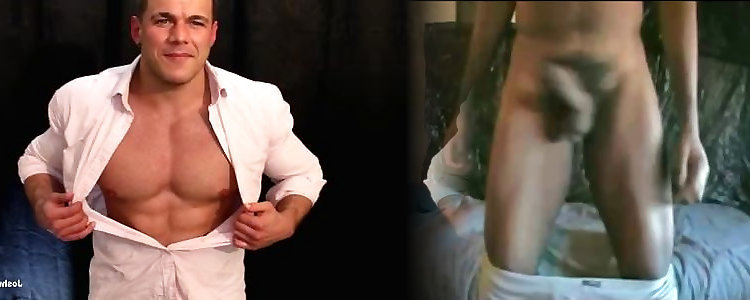 Muscle dude pecs and a rock hard prick