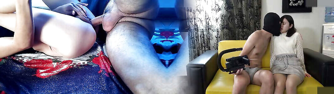Playing with big dildo and machine