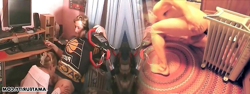 Fascinating and dirty honey sits with maked fellow and inhales the penis