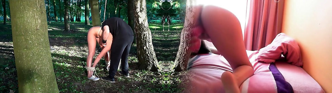 Slave suffers restrain bondage agony rough boink facehole use in the forest