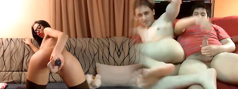 Slim brown-haired in glamour stocking screwed herself from
