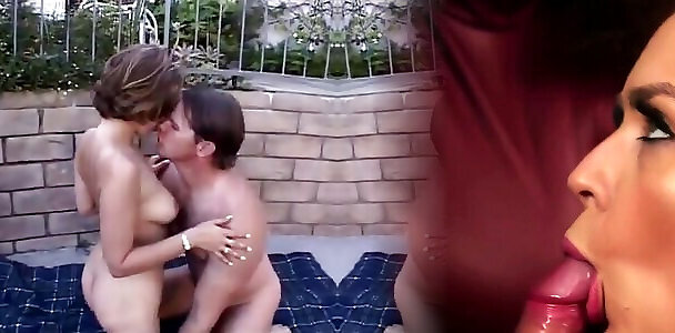 Chesty tramp Gianna Michaels spreads her raw slender lips plump a fat meat pillar