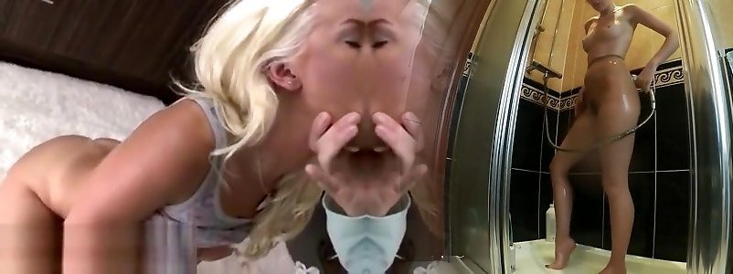 Light-haired Does Glide N Slide Bare In Her Backyard & Drains